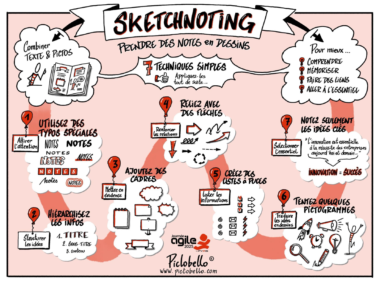 •  Téléchargez la sketchnote ci-dessus, avec un exemple de prise de note